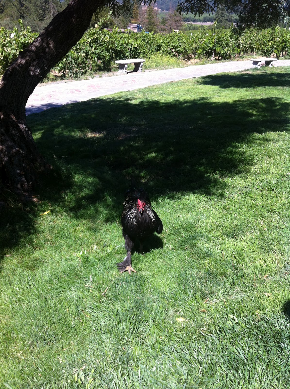 停好車就看到草地上好多雞在跑~